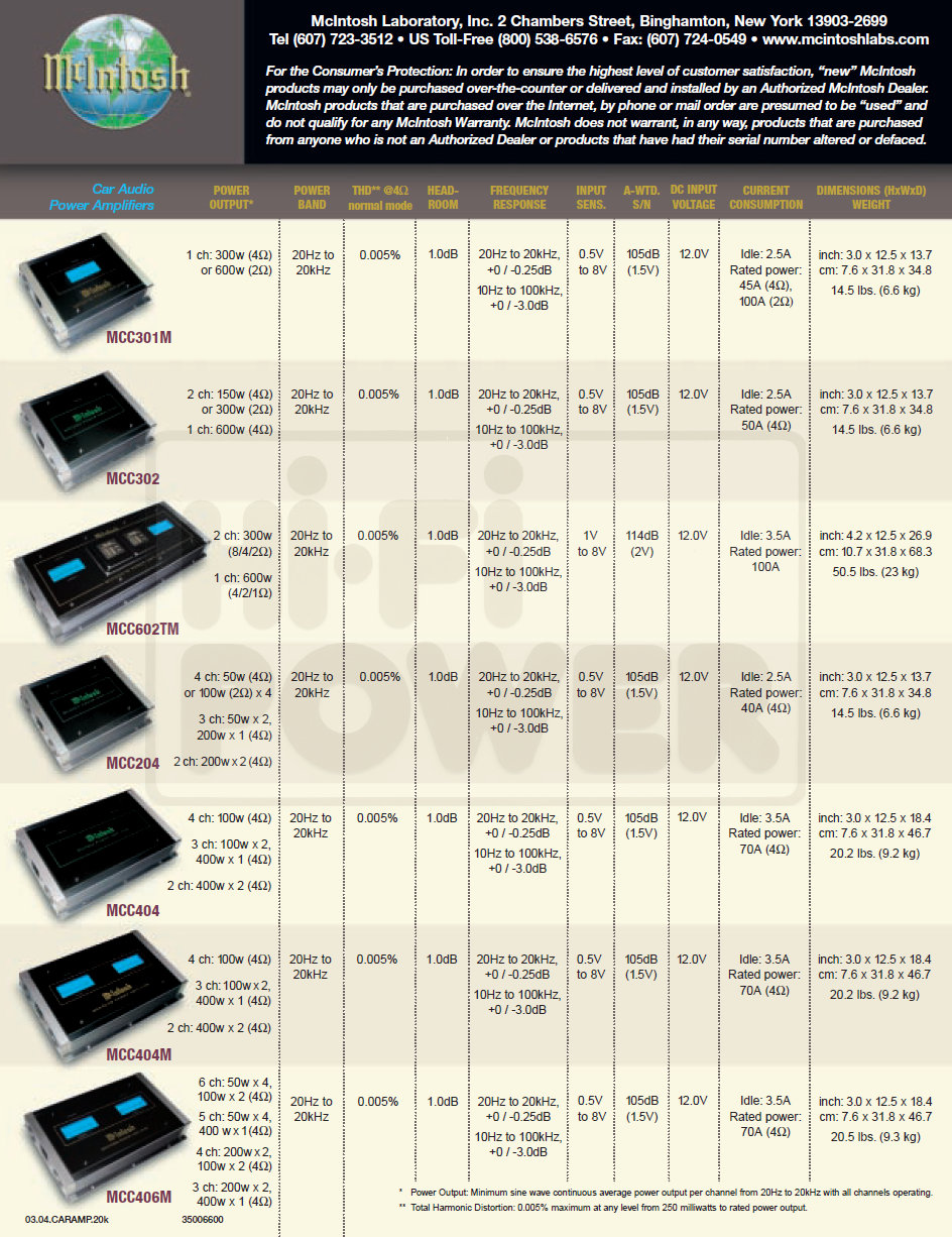 McINTOSH MCC406M ΕΝΙΣΧΥΤΗΣ ΤΕΛΙΚΟΣ, 6 ΚΑΝΑΛΙΑ, 4Χ50 & 2Χ100 WATT 4Ω, nή 4Χ50 & 1X400 WATT ή 2Χ200 & 2X100 WATT 4Ω,nή 2Χ200 & 1Χ400 WATT 4Ω, ΔΙΑΤΑΞΗ BALANCEDnPUSH/PULL, VU OUTPUT METERS, ΑΠΟΚΡΙΣΗ 10Ηz-100kHz,nTHD 0.005%, ΔΙΑΣΤΑΣΕΙΣ ΠΧΥΧΒ 31.8Χ7.6Χ46.7cm,